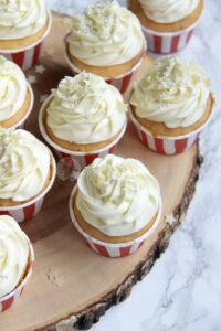 - To decorate the Cupcakes – I used a Medium 2D closed star tip to decorate my cakes but you can do whatever you like!