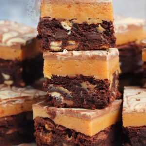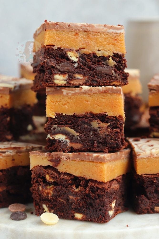 I have been baking your recipes for a few years now and I try to do new ones each time. This time I just happen to make these as it combines my two favourites, brownies and millionaires shortbread, and oh my! I am so glad I chose to bake these today as they have well and truly given me my chocolate and sugar fix. Plus they are a complete hit with my family so I can guarantee I will be baking these again, Thanks for the fab recipe!