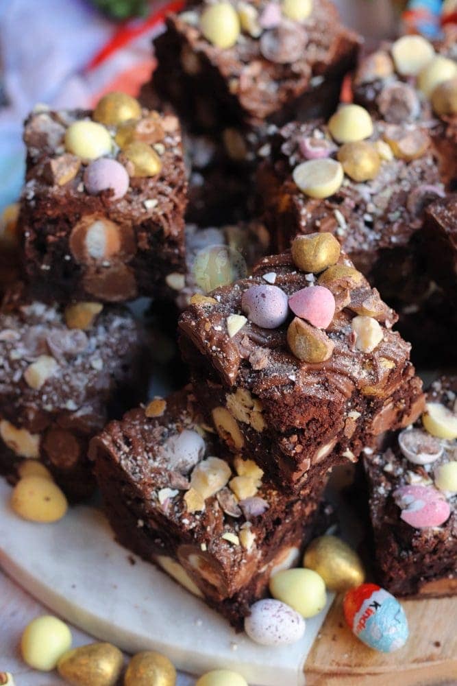 - You obviously don’t have to use as many chocolates as I did, I went a little crazy, but it shows you that you can use whatever you like. Creme Eggs are slightly different however, you’d have to freeze them overnight before baking with them.