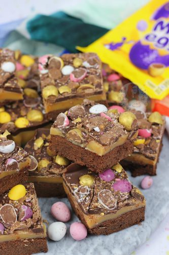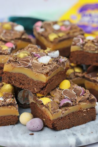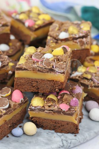My Mini Egg Cookie Bars, Easter Brownies and Easter Rocky Road have always been popular since I posted them, even if they were only recent. I knew however that some of you still would want another traybake, so this delicious treat was born.