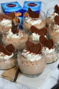 - Pipe/Spoon the Mousse into some Mixer Glasses, and leave to set in the fridge for 3-4 hours.