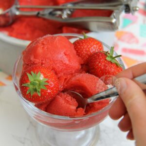Fresh Strawberry Sorbet with your Favourite Gin. Perfect Strawberry Gin Sorbet for A Hot Day this Summer!