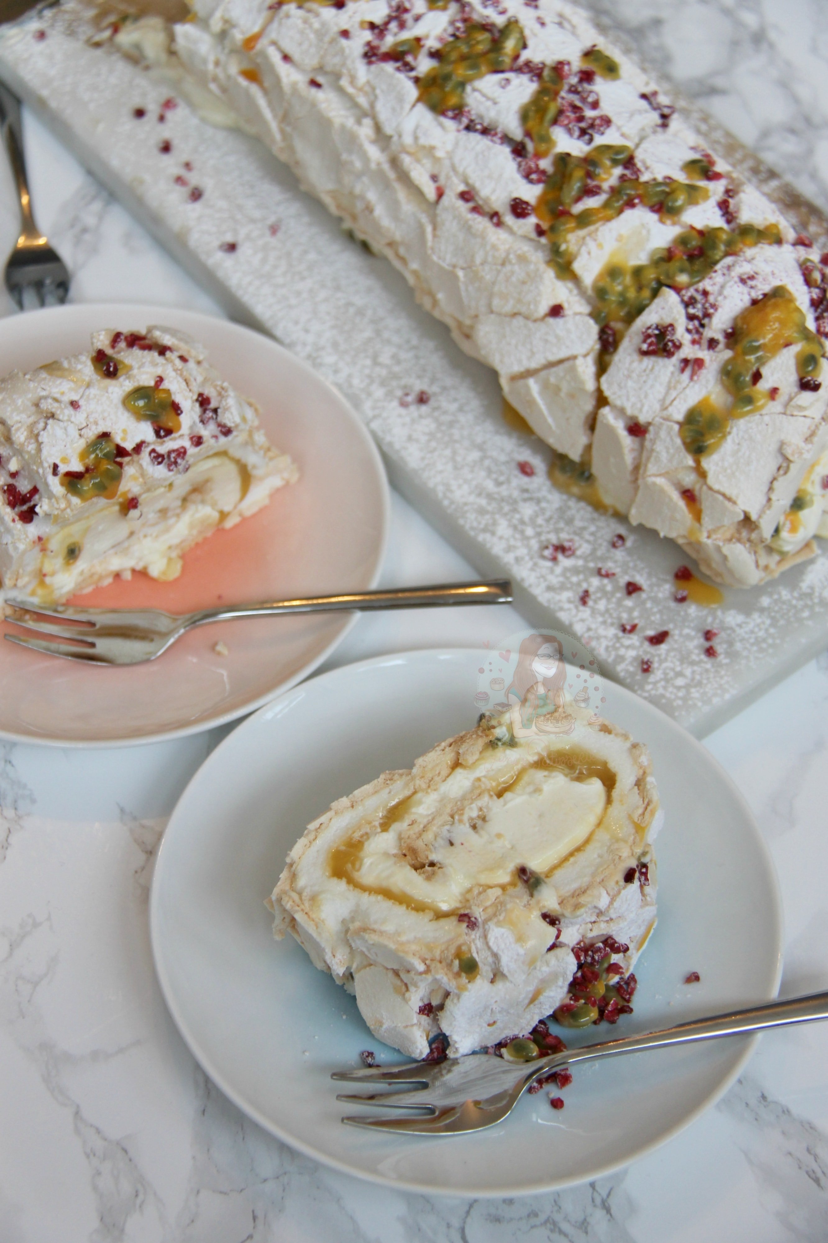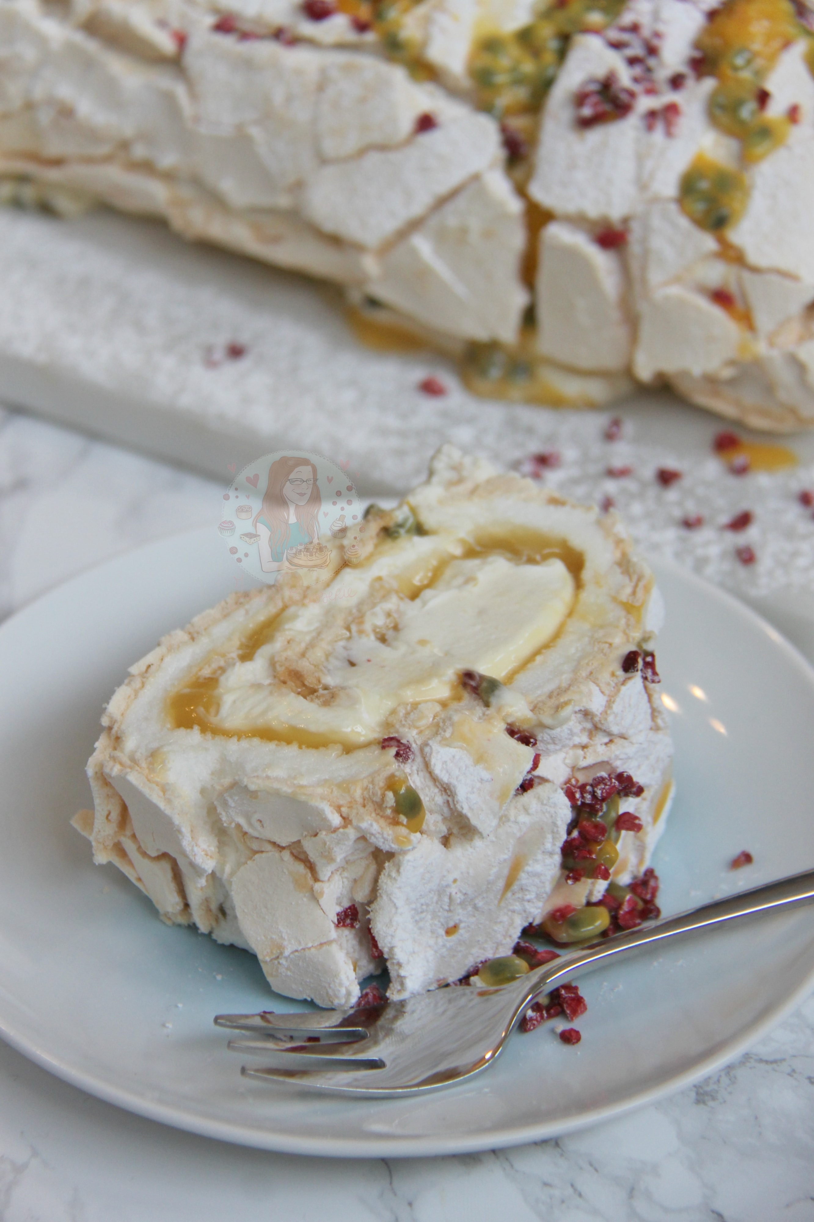 The meringue naturally will crack when you roll it, and I think thats part of the charm of the dessert. Filling it with some of my Homemade Lemon Curd, some Passion Fruit, and the freshly whipped cream was so dreamy, so moreish.