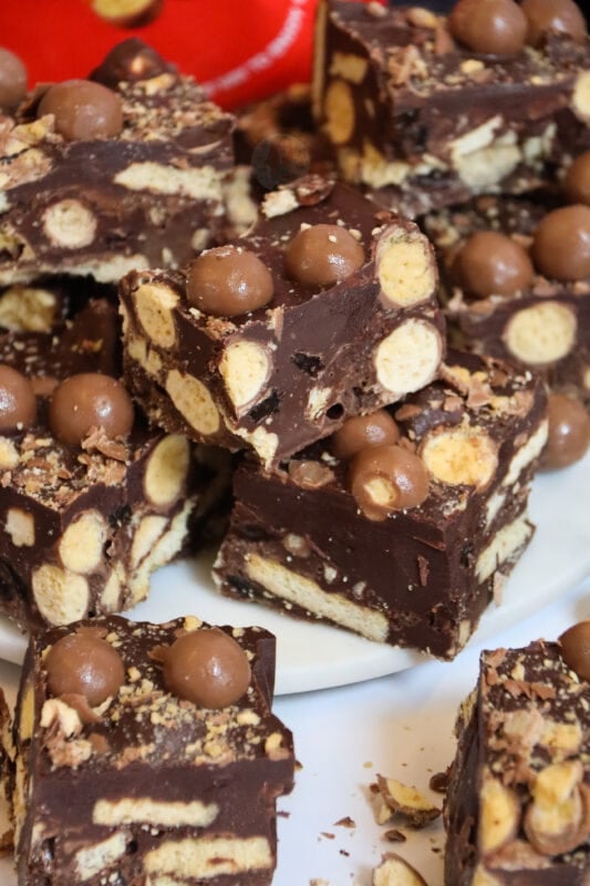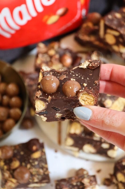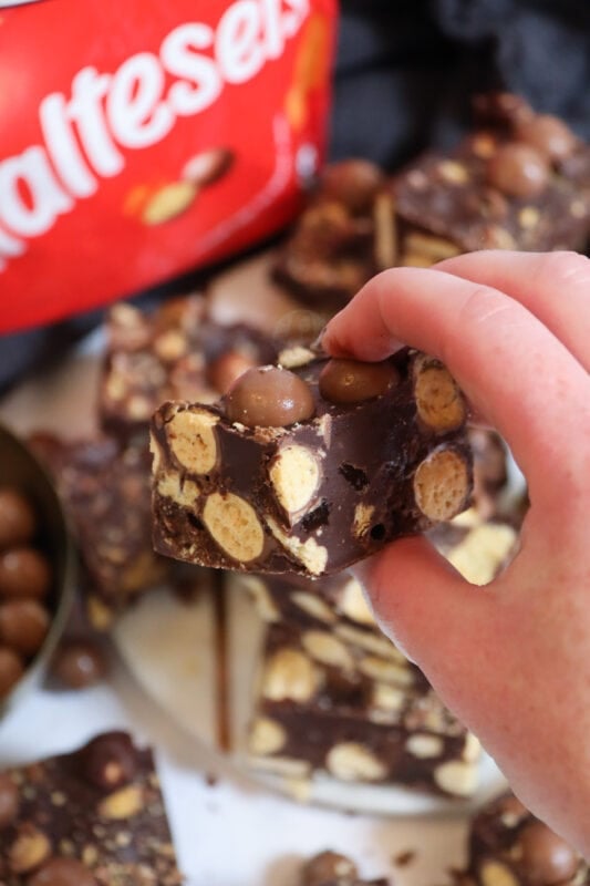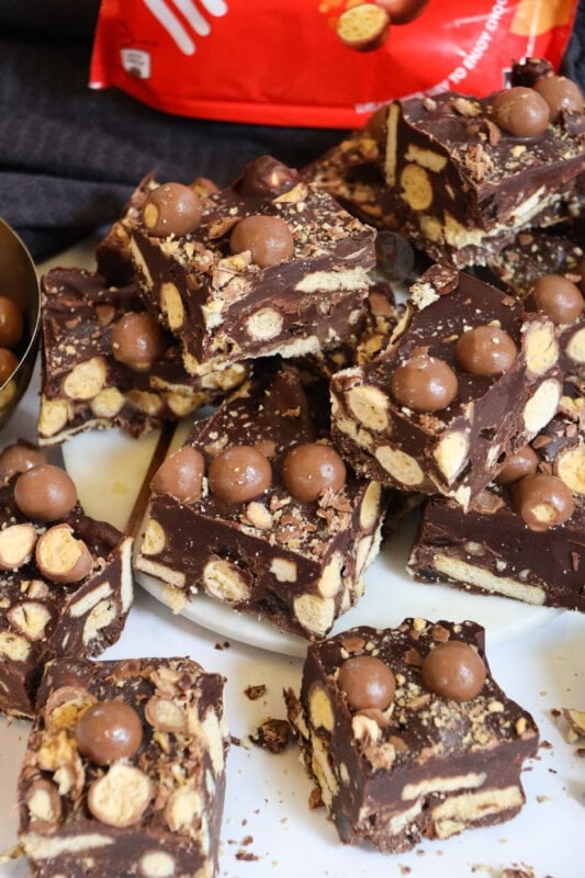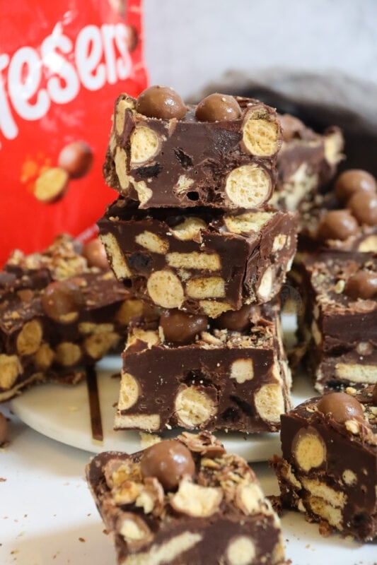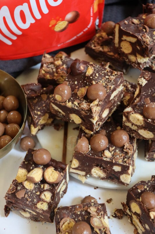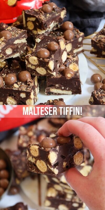A no-bake Malteser tiffin made of all things delicious – biscuits, Maltesers, dark and milk chocolate and more