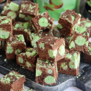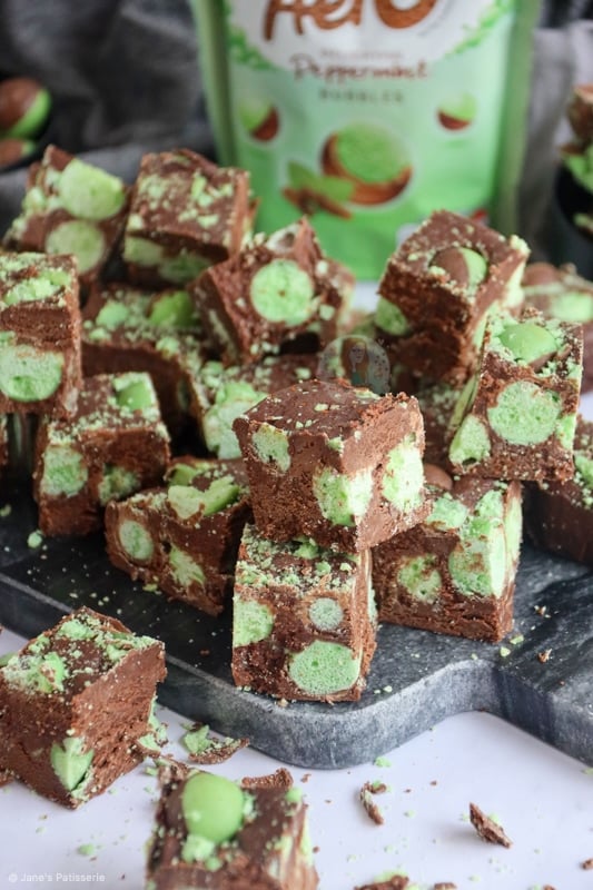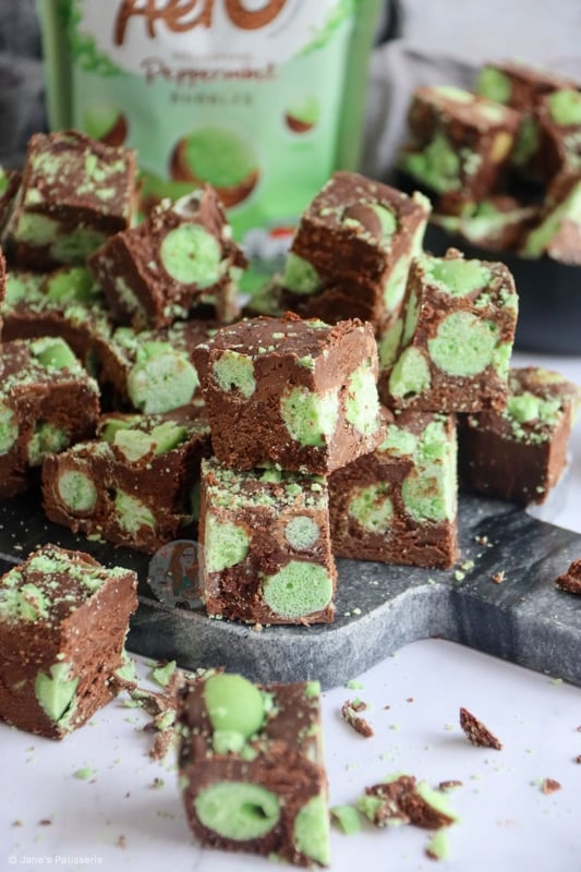 Easy four-ingredient Mint Aero fudge with dark chocolate, milk chocolate, condensed milk and Mint Aero!