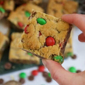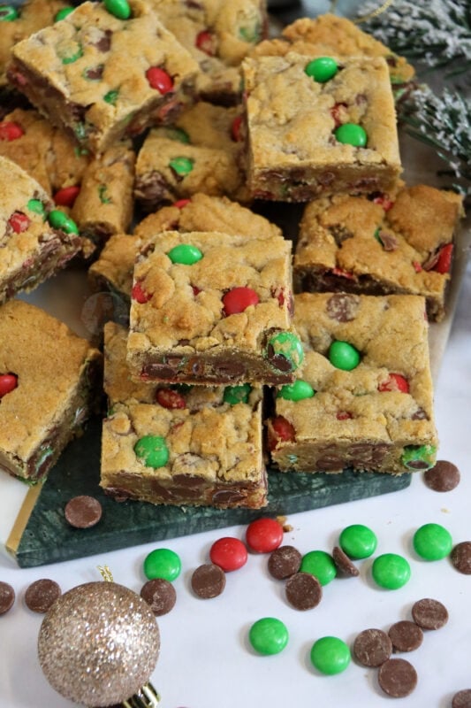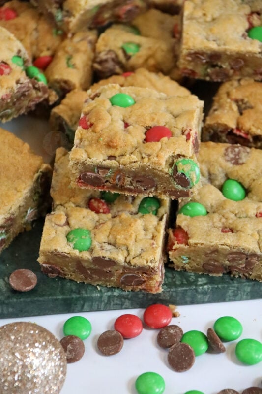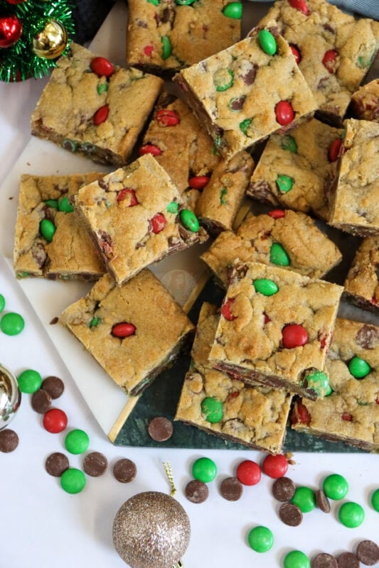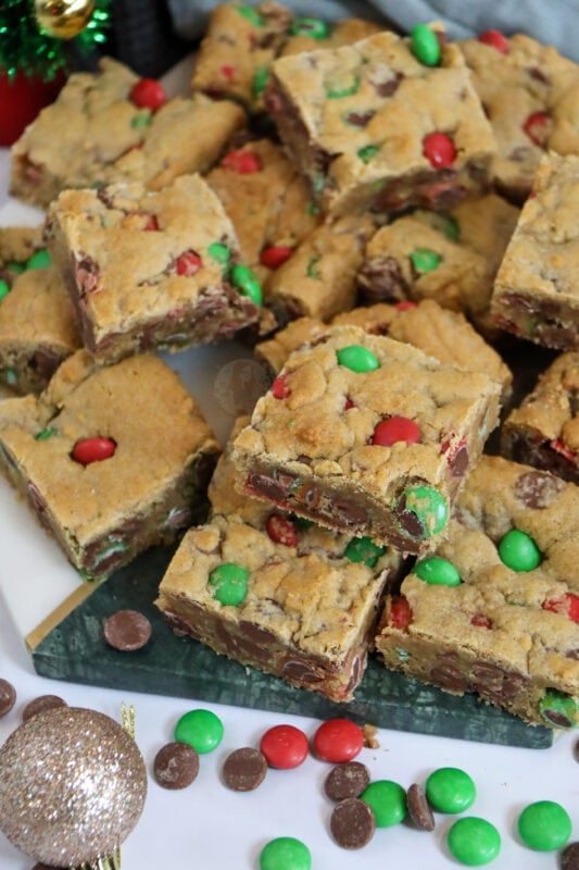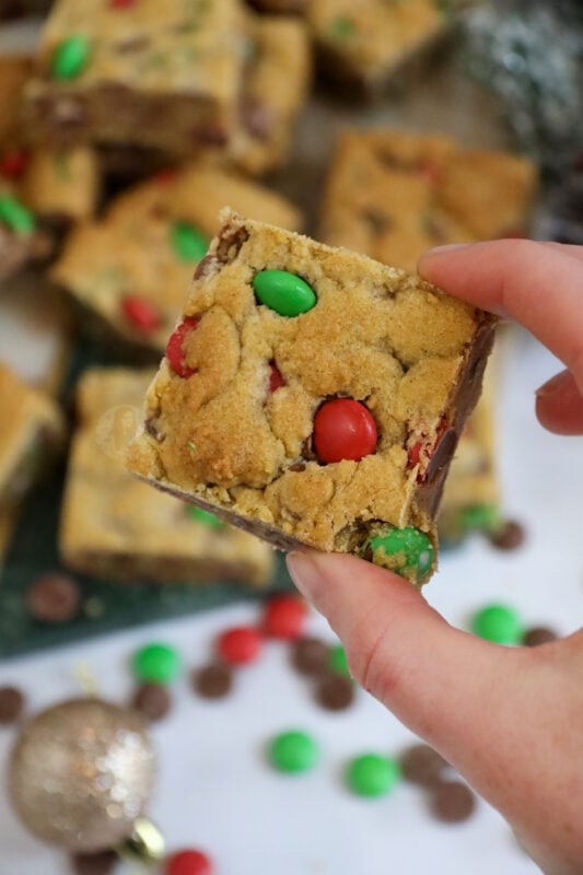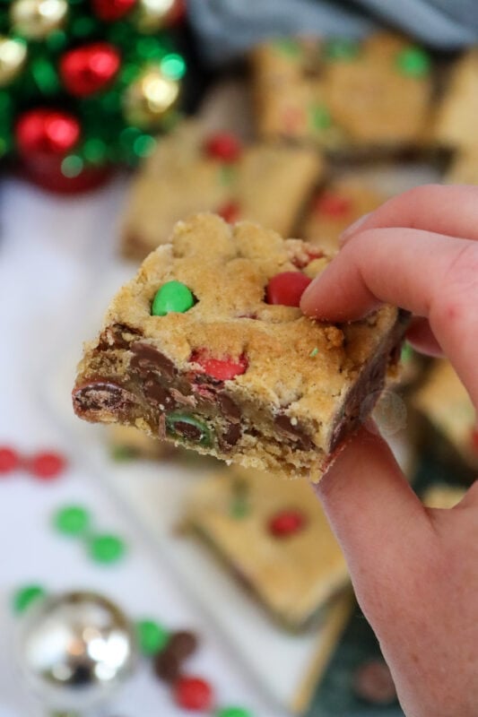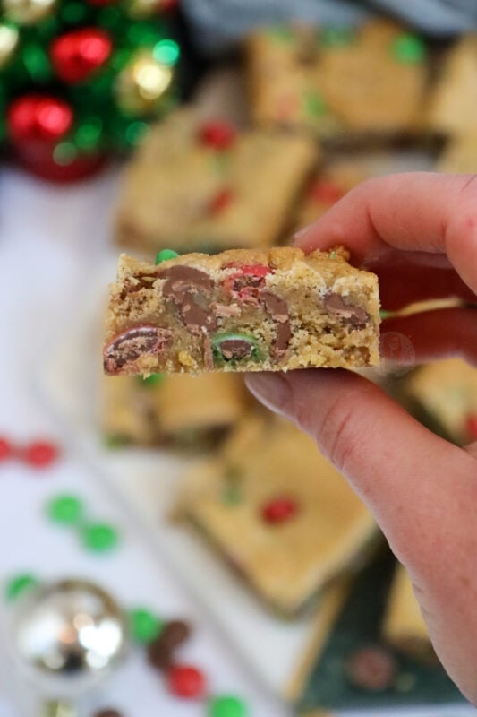 So, I won’t lie.. this is a DELICIOUS cookie bar recipe, that I am just going to go ahead and call it Christmas themed. There aren’t that many alterations from my other cookie bar recipes like my Oreo Cookie Bars and my Mini Egg Cookie Bars if I am completely honest.