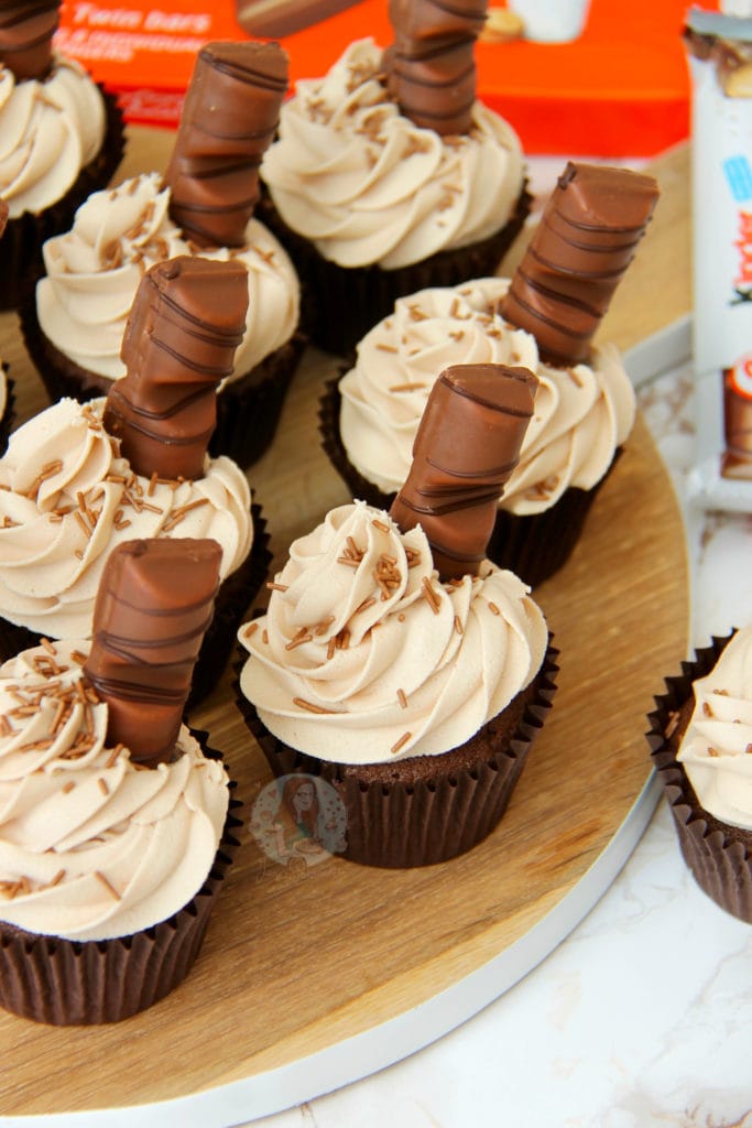 Like my Kinder Bueno Cheesecake, the flavour of these come from the Kinder Chocolate. A lot of Kinder Cupcakes I have tried have Nutella Buttercream, which is delightfully delicious, but I wanted to try something a little different so I used the Kinder Chocolate melted for the buttercream, and it created a wonderful flavour. Chocolate Cupcakes with a Hazelnut hint, and then a Kinder Bueno piece on top make my most popular Cupcakes of the year!