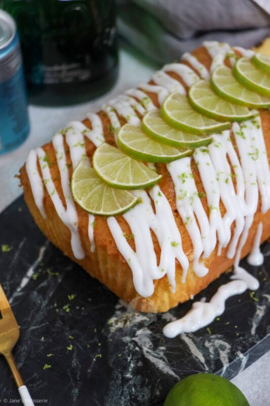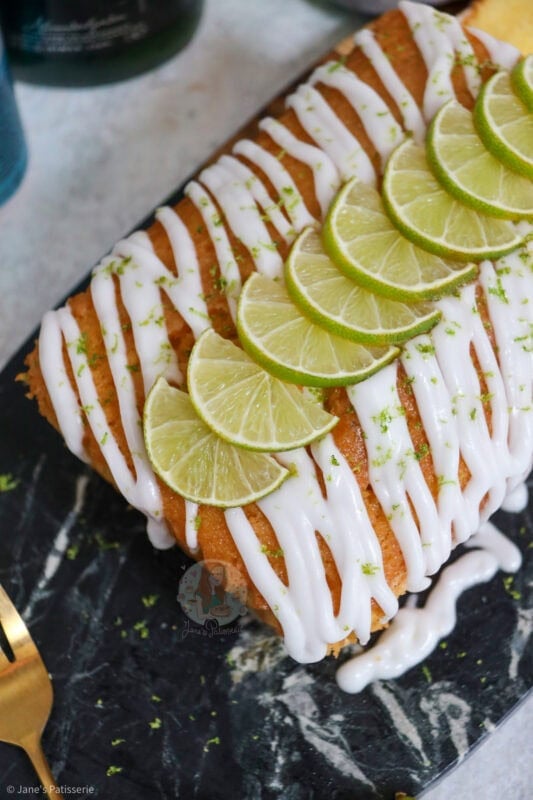 - Pour or drizzle the icing over the cake, and sprinkle over some lime zest, and then add some lime slices for more decoration.