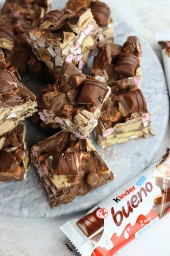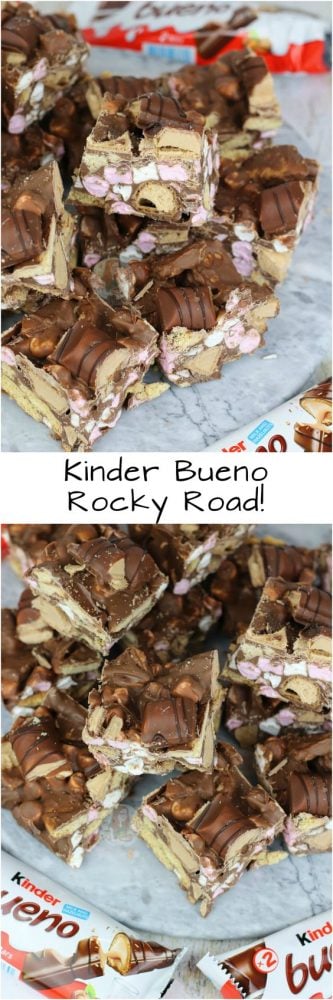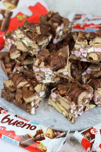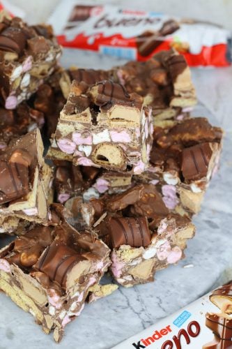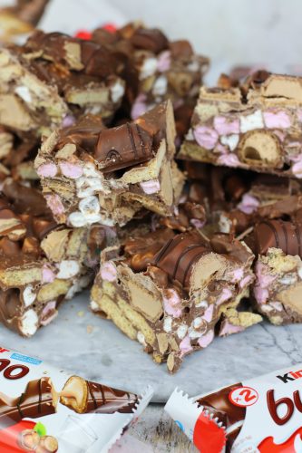 Easy, delicious Kinder chocolate rocky road with biscuits, marshmallows and Kinder Bueno.. Heavenly Kinder Bueno rocky road!