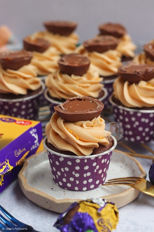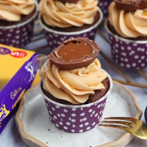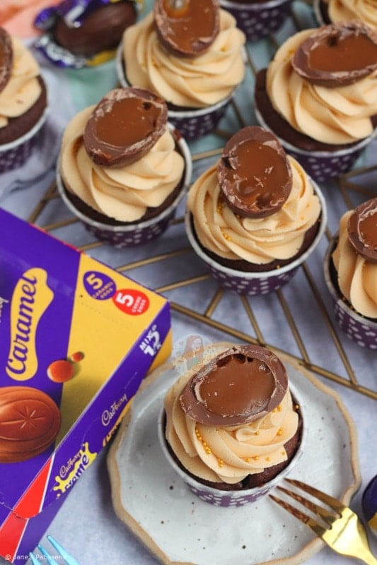 Chocolate cupcakes with a Cadbury’s caramel egg centre, caramel buttercream frosting, and even more Cadburys caramel for dreamy Cadburys caramel cupcakes!