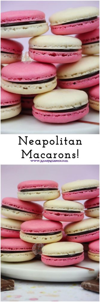 A delicious macaron twist on a classic ice cream… a vanilla shell, chocolate ganache filling, and a strawberry shell… Neapolitan macarons!