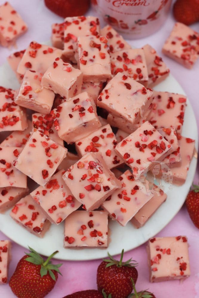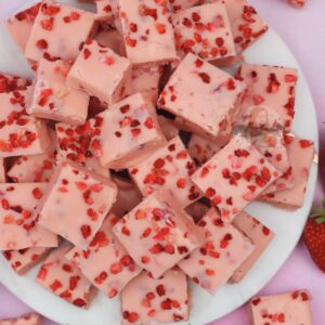 Easy, five ingredients Bailey’s strawberries & cream fudge!