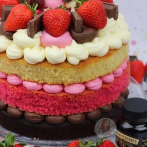 The final layer is vanilla, so obviously that is quite simple. Add in a good quality vanilla extract, and you’ll have your final layer. The buttercream, flavours are flavoured in the same ways to make things easier. You don’t have to use the pink food colouring, but I think it makes it look properly Neapolitan themed. A good quality one is best, so I recommend Colourmill pink!