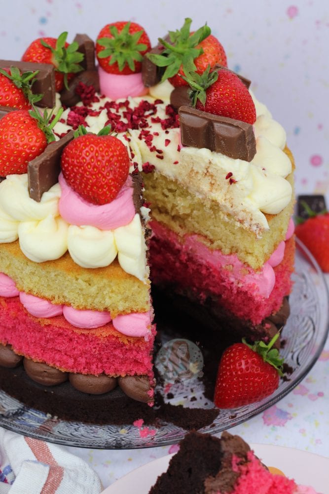 I’ve posted a couple of Neapolitan recipes before with my Neapolitan cheesecake and my Neapolitan cupcakes for example, so I thought it was about time I did another one, and I thought a full layer cake was the best route to go. You can see from the images that its a showstopper of a cake, and has a layer that everyone will love most!
