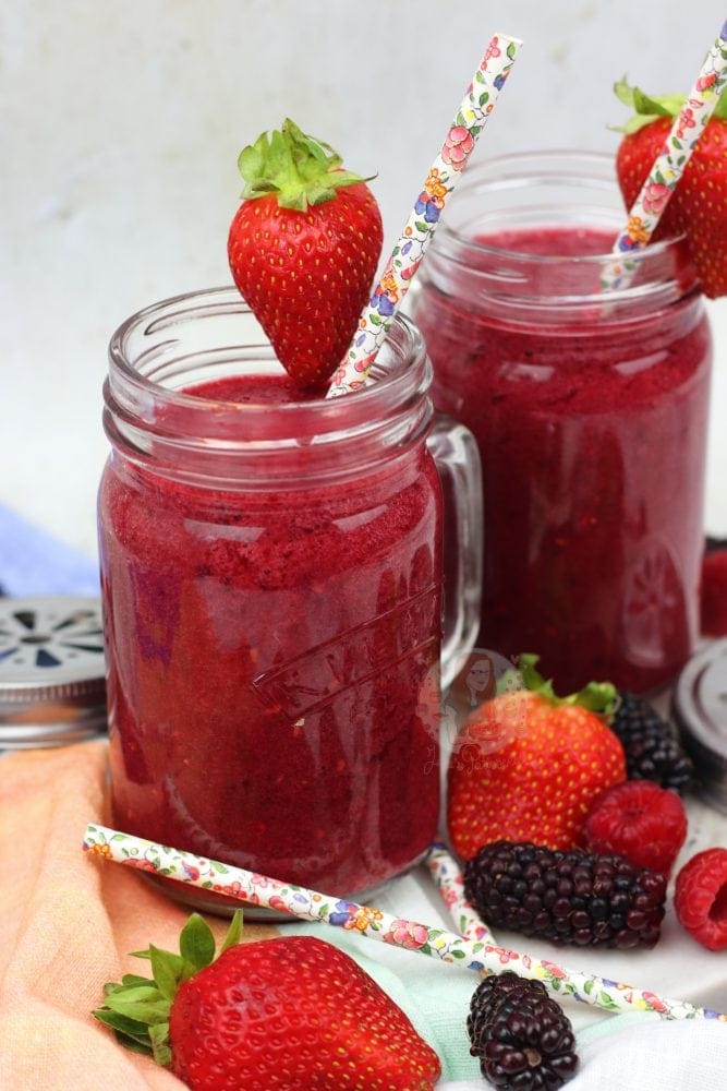 Strawberries, blackberries, raspberries & blueberries all make THE most delicious summer berry smoothie!