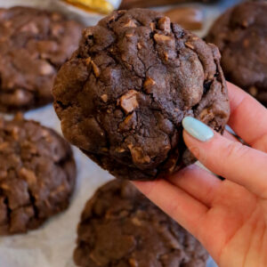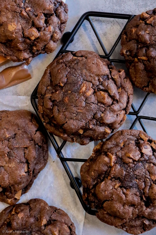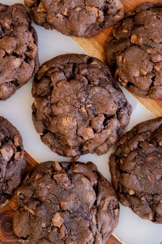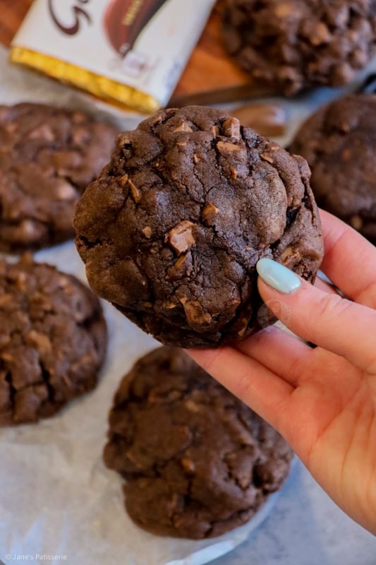I’ve been feeling a bit of a cookie craving recently, and I’m not even sure why. I know part of it is to do with how insanely successful my Kinder Bueno cookie bars were, and still are now… but I was craving something even more chocolatey… something DELICIOUS and heavenly. These cookies were born.