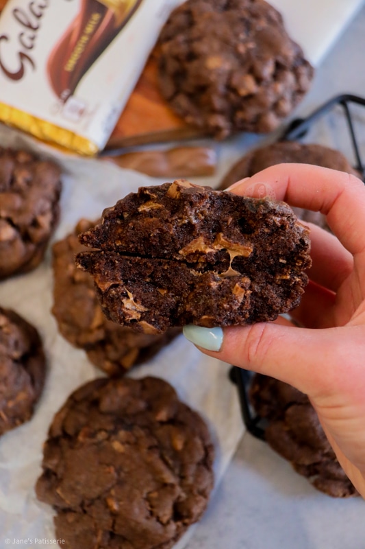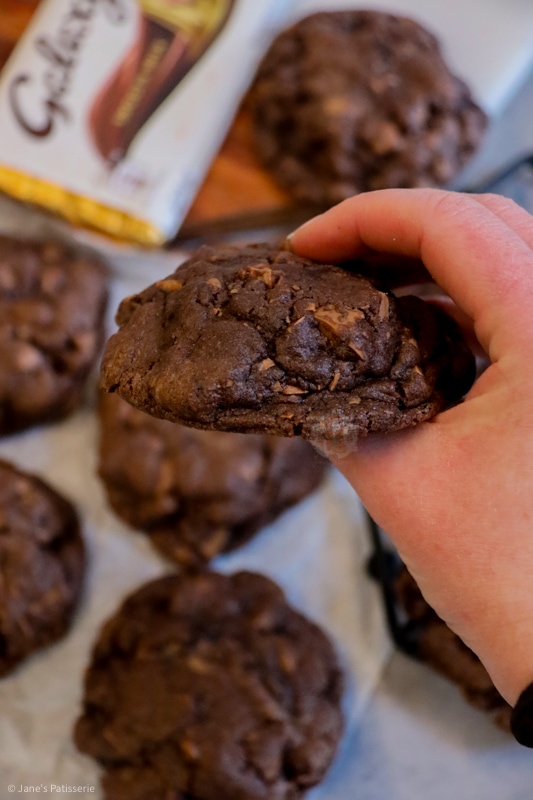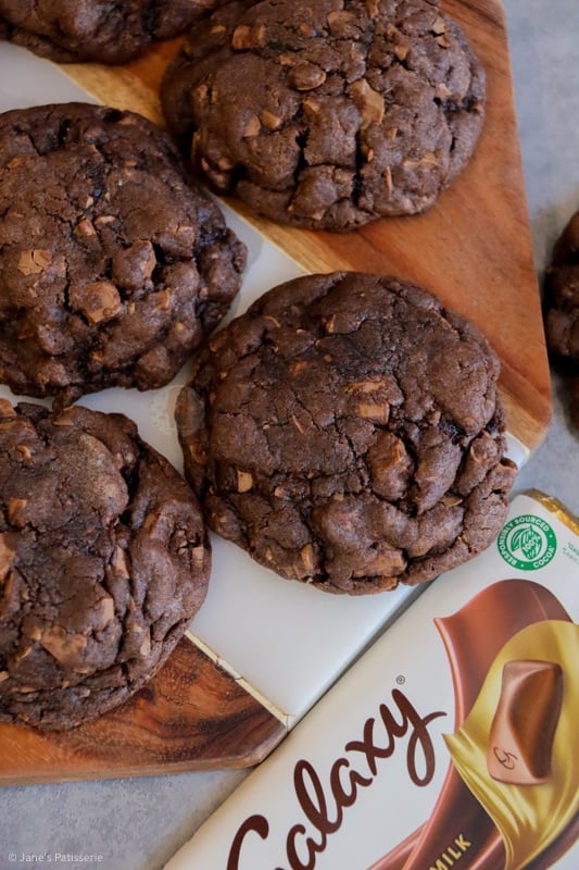Delicious, gooey, crunchy and YUMMY giant Galaxy chocolate chip cookies, full of Galaxy goodness!