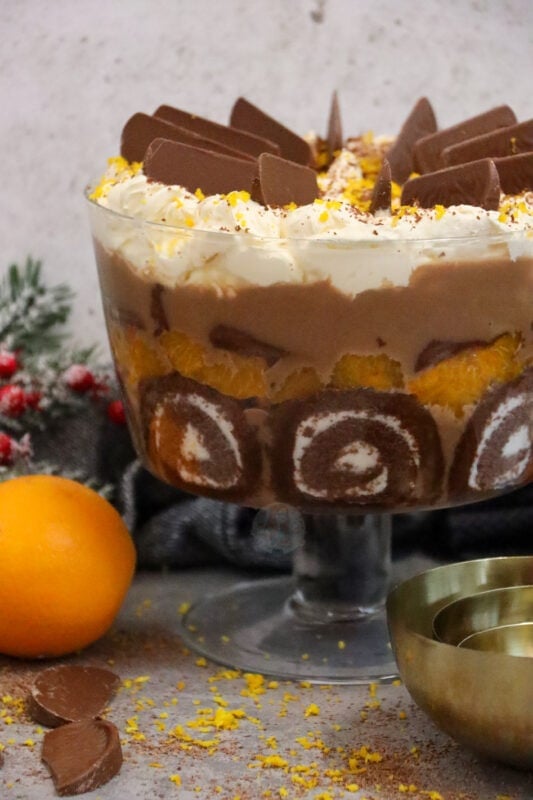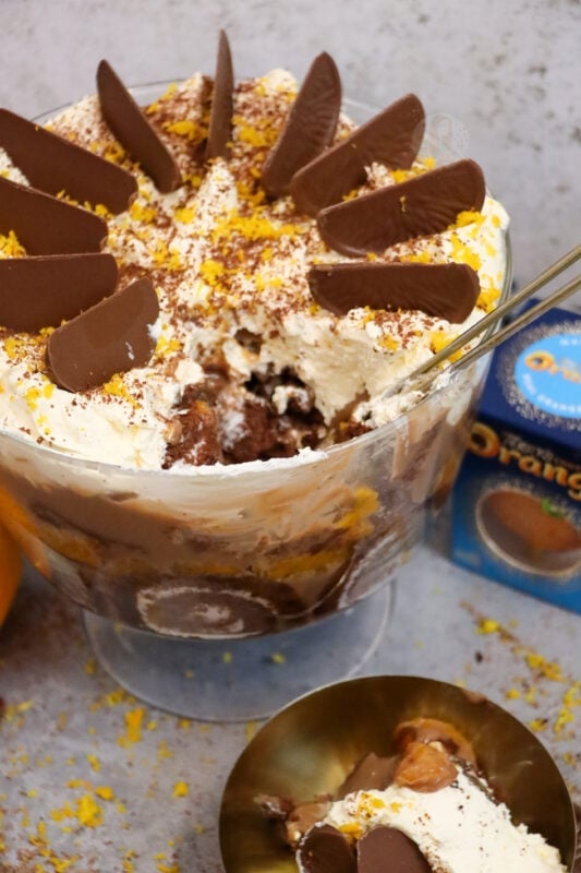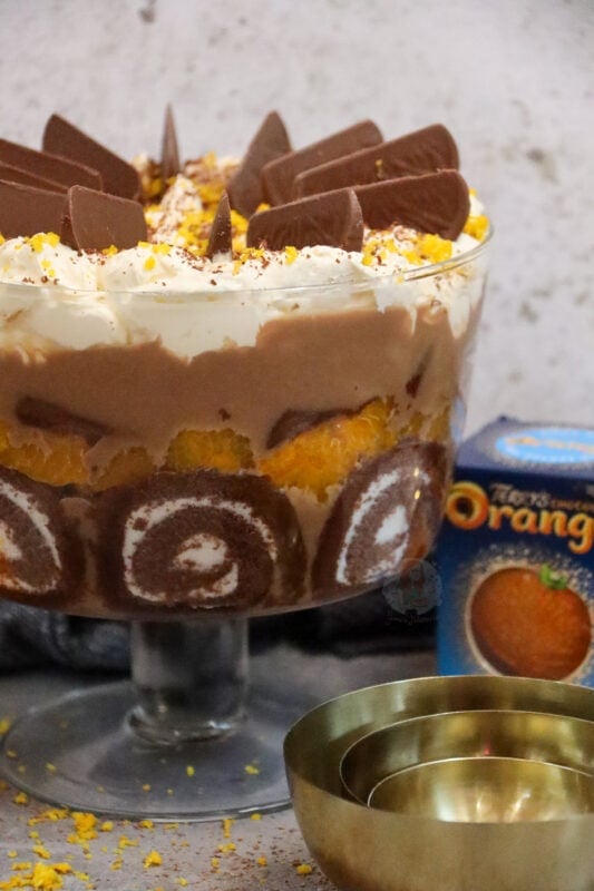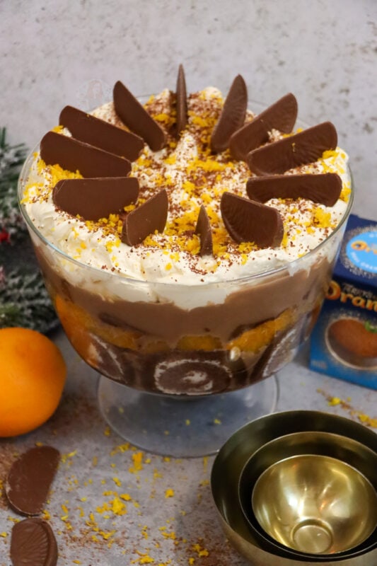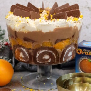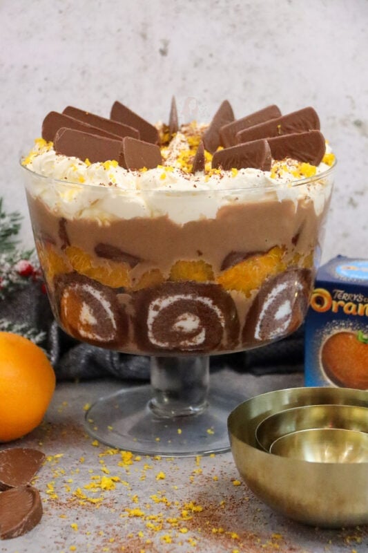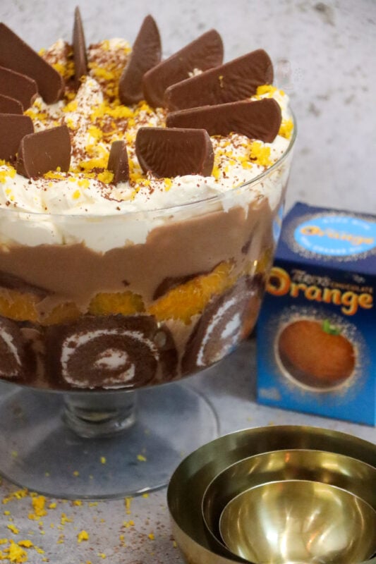 Easy and delicious Terry’s chocolate orange trifle, perfect for the festive dinner table.