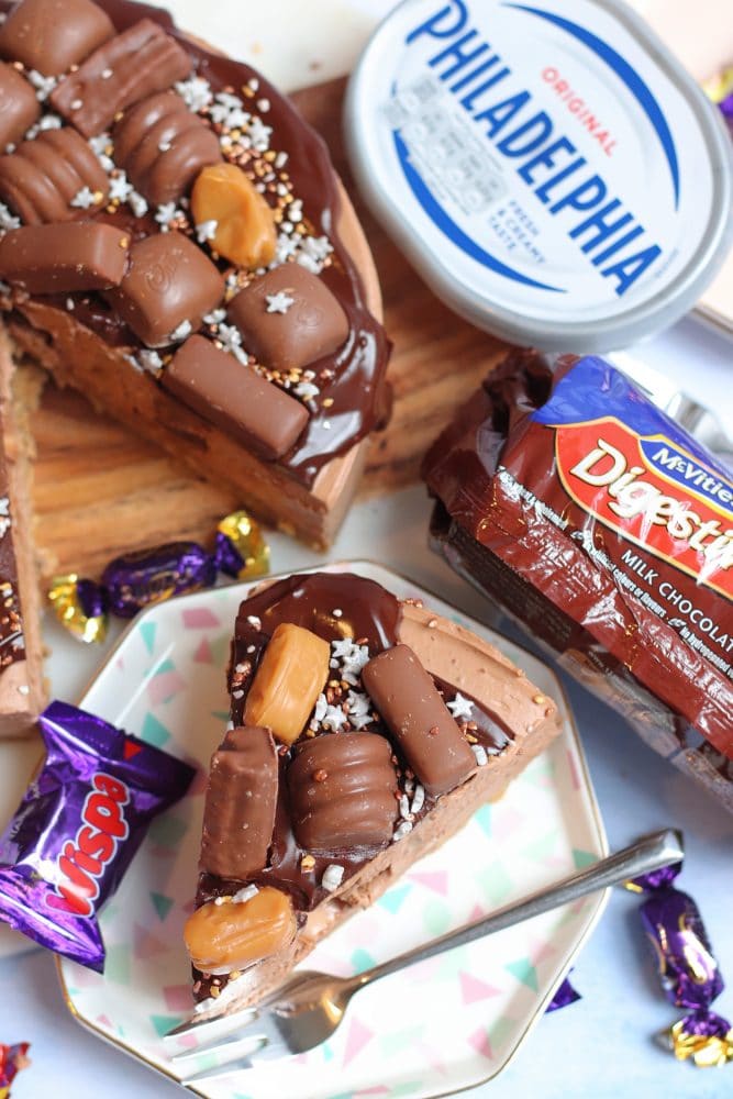 They set me a challenge of creating something with Philadelphia, Mcvities and Heroes, so I decided to create a cheesecake that involved all of these favourite cheesecake bits, that you can all buy in Costcutter stores! The classic part of my cheesecakes, Philadelphia cream cheese was already a winner as I use it ALL of the time! Then the Mcvities chocolate digestives and Cadbury’s Heroes brought to life this insane cheesecake. Along with some other staple ingredients, this beauty is SO YUMMY I can’t cope.
