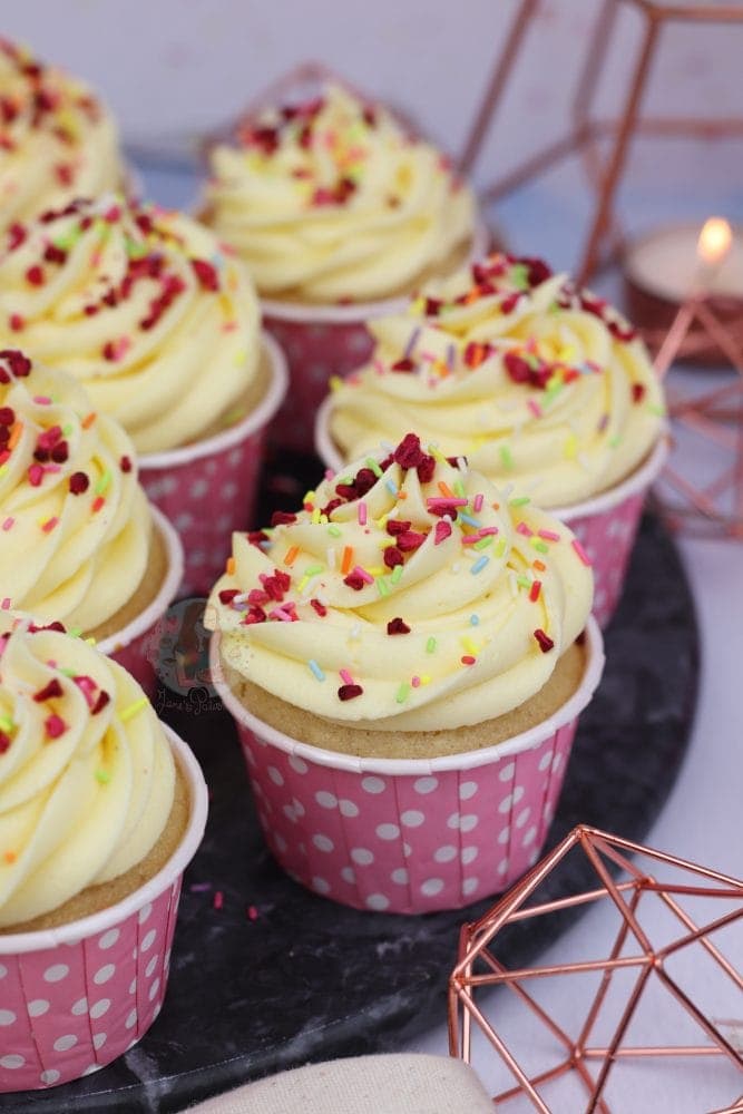 - Pipe onto your cupcakes how you please, and sprinkle with your favourite sprinkles!