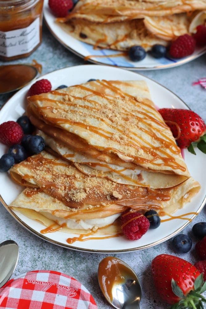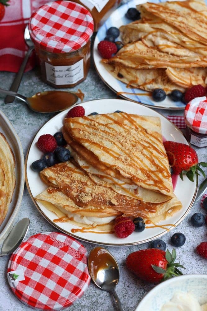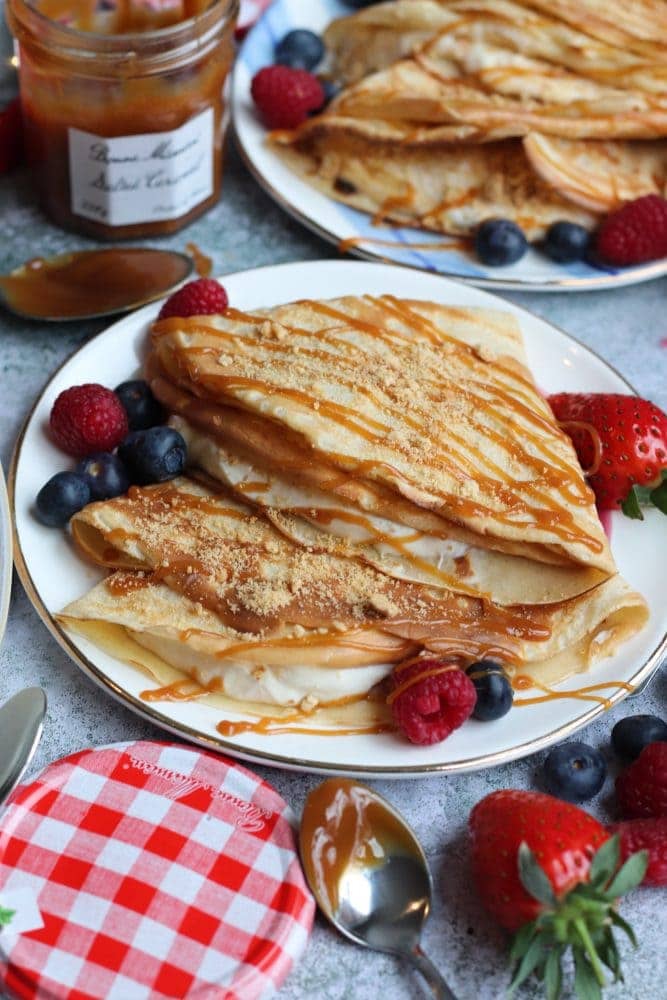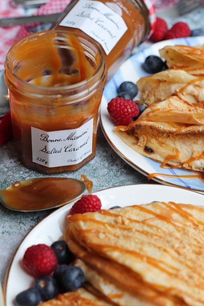 I’ve never seen Bonne Maman Salted Caramel here in the USA but guess I’d better start looking. Those crepes look soooo delicious. I’ll be visiting Scotland later this year and will look there too!