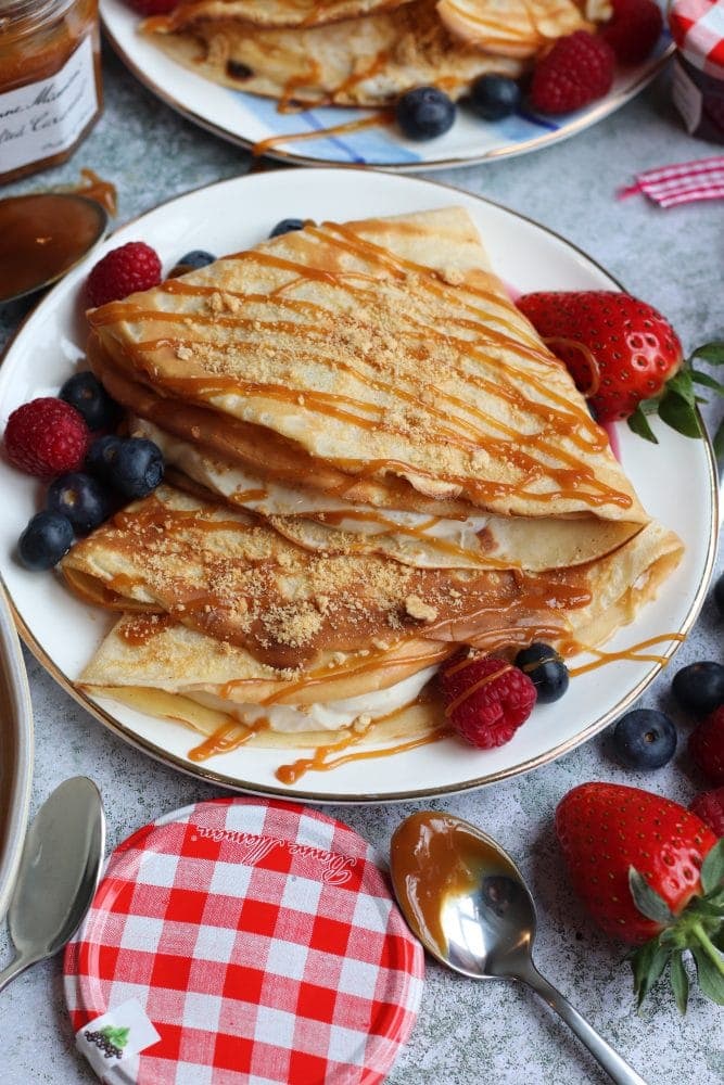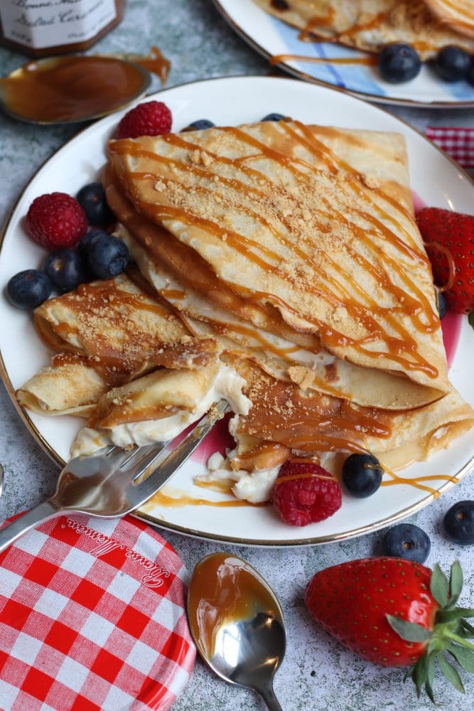 Salted caramel cheesecake crêpes with Bonne Maman!