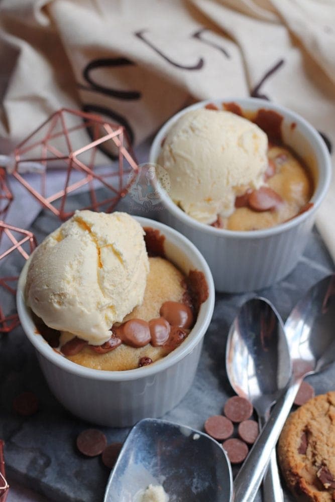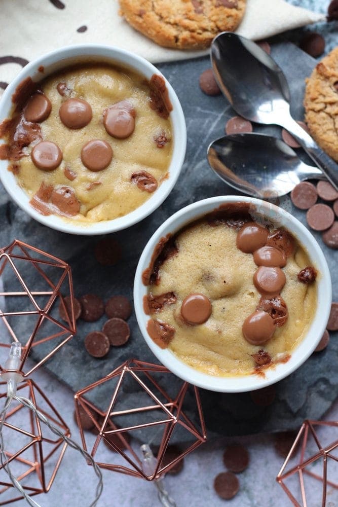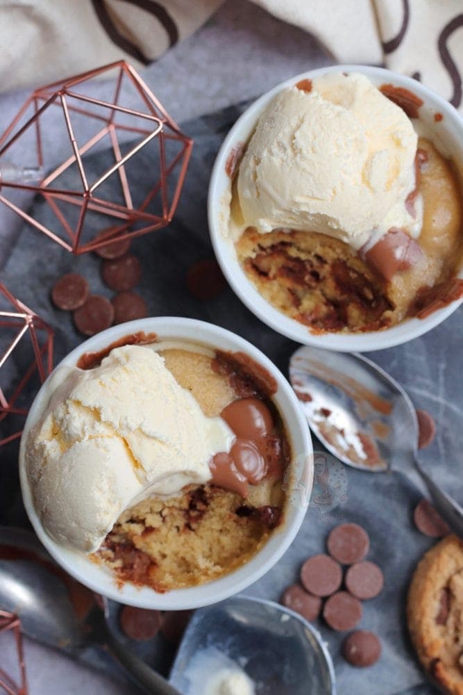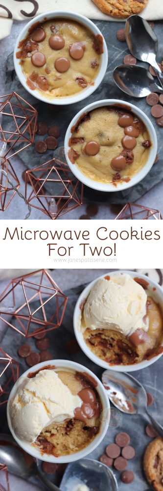 Recently I shared my recipe for my triple chocolate cookie dough desserts (which is baked, so just a gooey cookie), and you all LOVED it! I reckon that beauty can be made in a microwave as well, but there is quite a bit too it. There is a lot more cookie dough as well, so you would probably end up with six or so, but delicious.