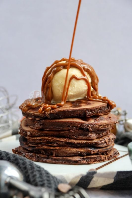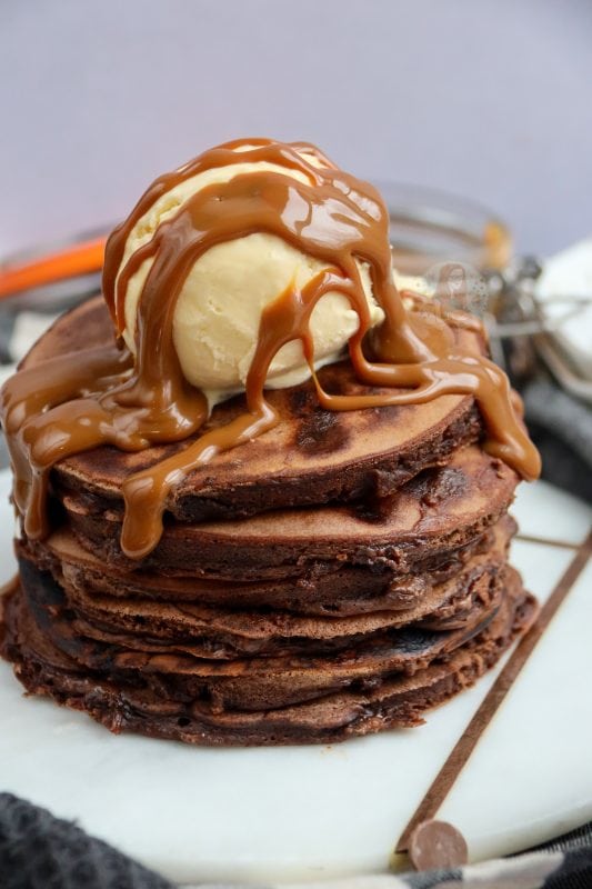 As much as the ‘designer pancakes’ of the pancake stack world look incredible, I can NEVER finish them. I love a few pancakes in a stack, topped with something cold like clotted cream ice cream, and a bit of an extra drizzle, and that’s it. Don’t get me wrong, I am still partial to a lemon & sugar pancake for the true classic, but I know you will all love these too.