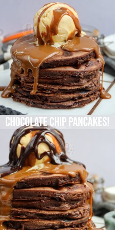 Easy chocolate chip pancakes that are perfect for breakfast, and pancake day!
