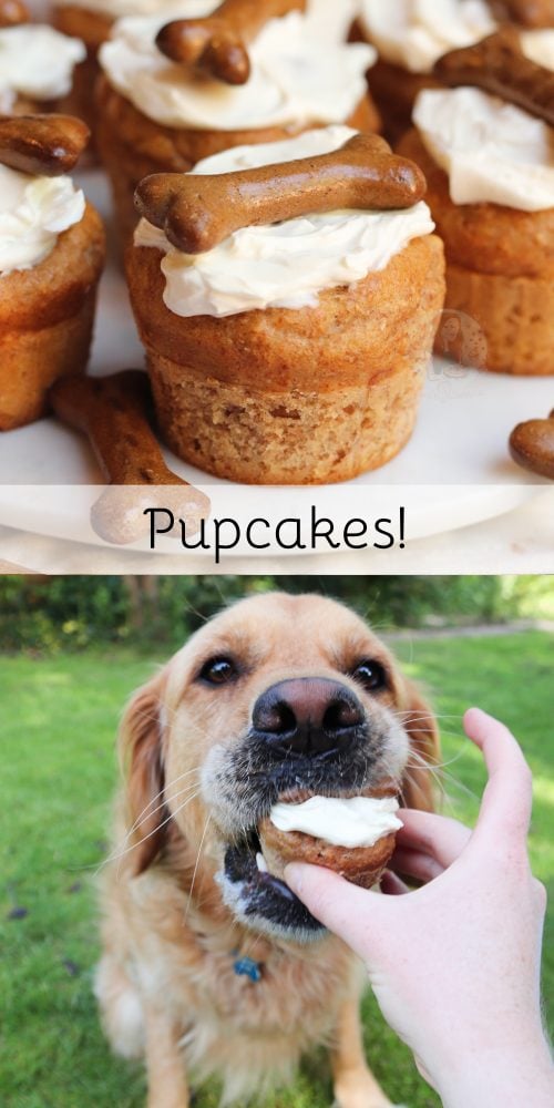 - You can half the recipe to make six pupcakes, or split half into twelve if you have a smaller dog who eats less! Bake them for 10 minutes if they are smaller.