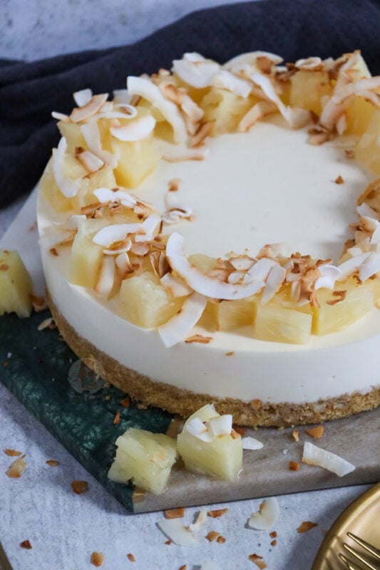 You can feel free to try the cheesecake without a setting agent, but with the pineapple juice, and rum added in, I really much preferred it with the setting agent. I hope you guys love this piña colada cheesecake as much as I did! Enjoy! X