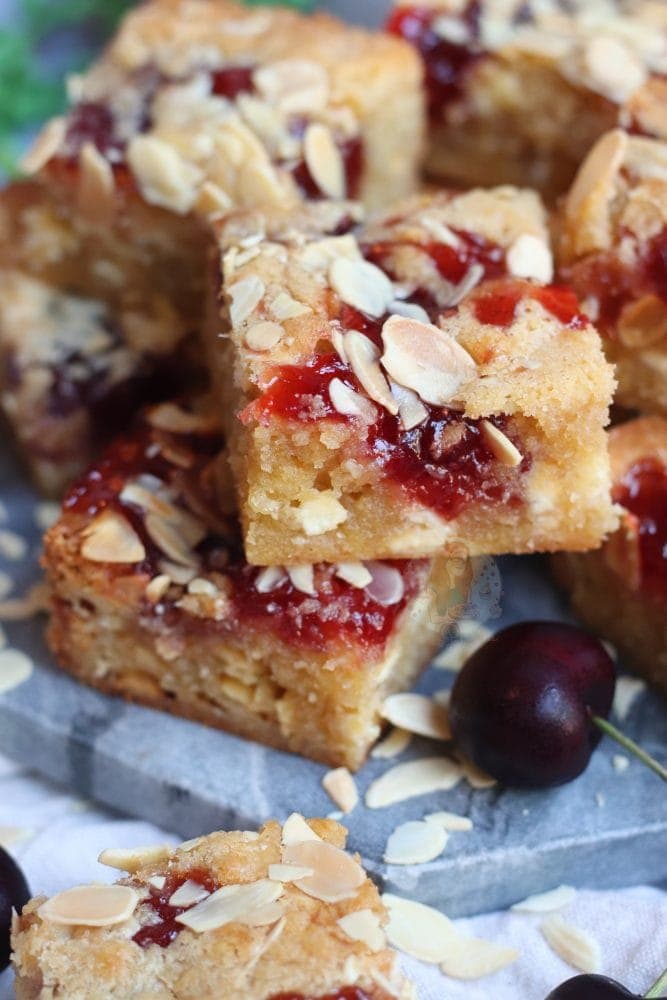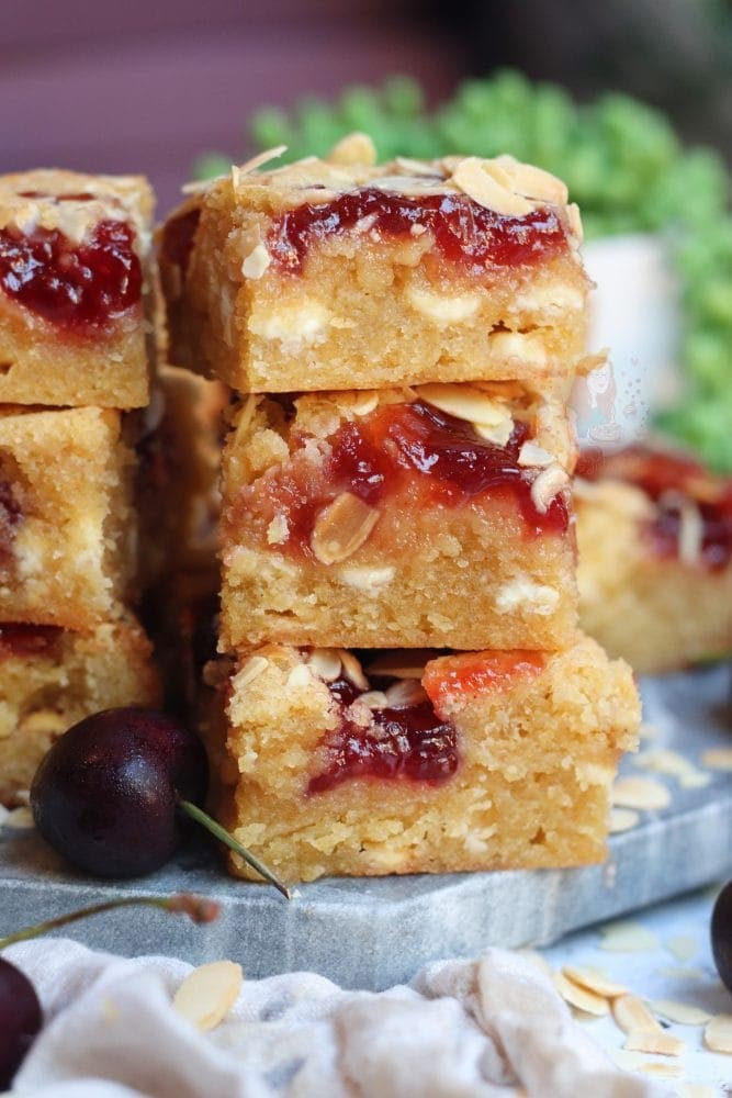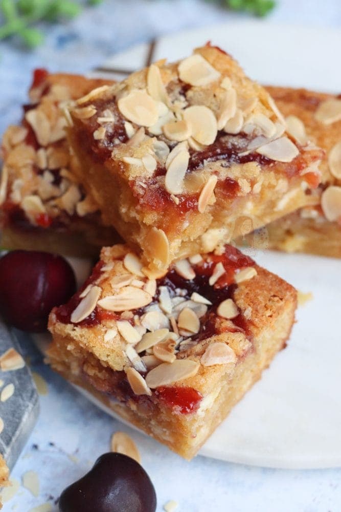 Absolutely gorgeous I love anything that has ground almonds in these Bakewell Blondies recipe are absolutely gorgeous little morsels of delighted I could quite happily devour far too many of them I have to freeze some to be able to resist they’re fabulous all of my family adore them many thanks for sharing your scrumptious recipes they all turn out perfectly!