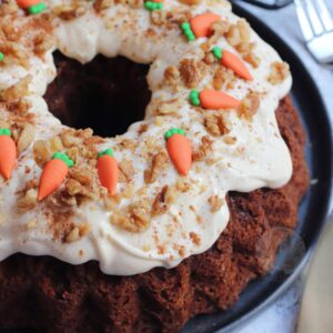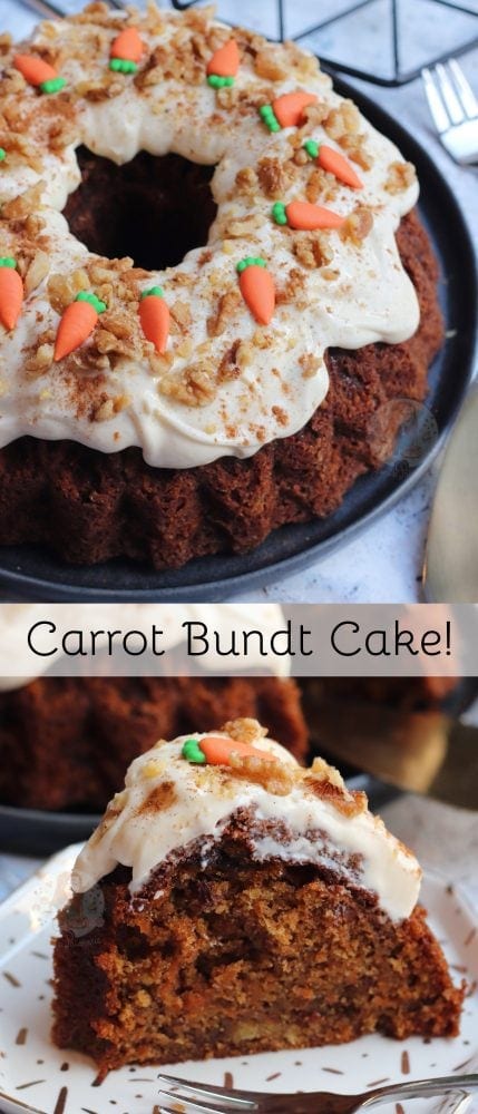 Sweet, light, spicy and delicious carrot cake bundt cake with a cream cheese frosting!