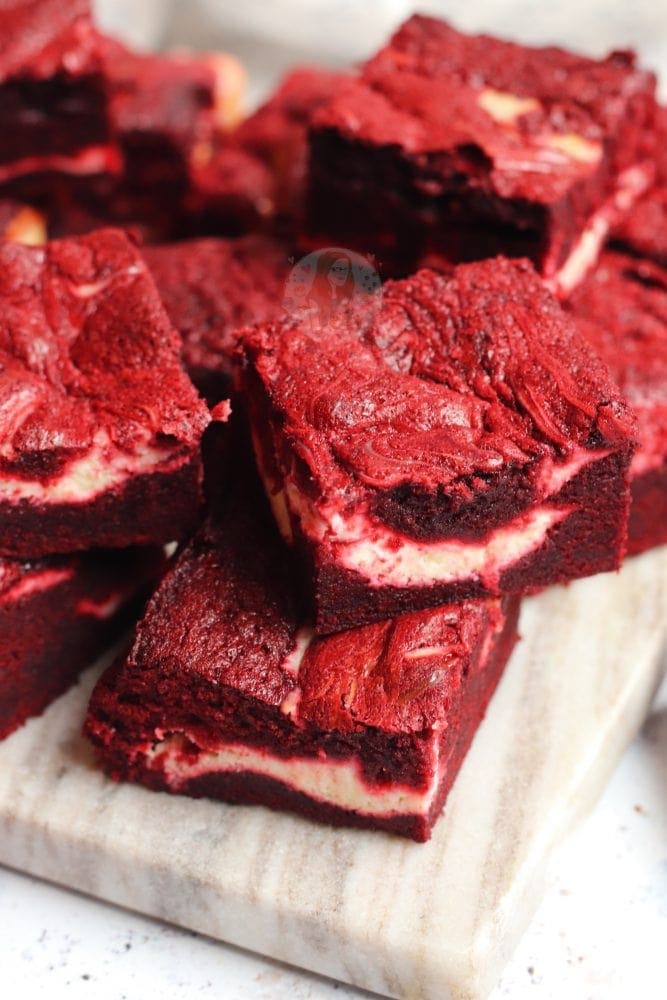 These red velvet brownies with a vanilla cheesecake swirl look absolutely divine! The rich, velvety texture of the brownies paired with the creamy, tangy cheesecake swirl is a match made in dessert heaven. The striking contrast between the deep red and the white swirl makes them as beautiful as they are delicious. Can’t wait to try this recipe—thanks for sharing such a decadent treat!