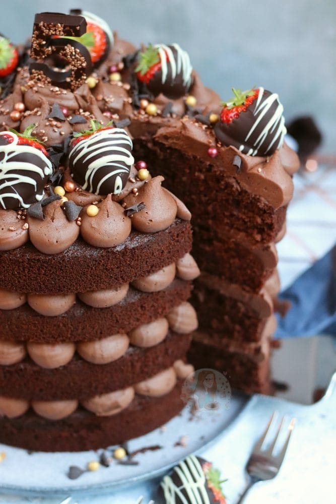 I used the recipe for my Kinder Bueno Cake (from last years blog birthday) for the sponges as I wanted a chunky few layers – and then used my chocolate cake buttercream recipe, but doubled!