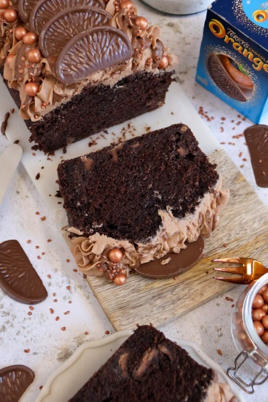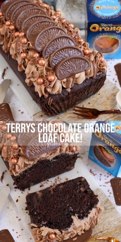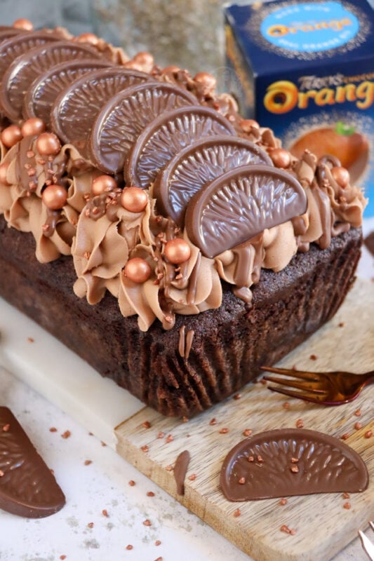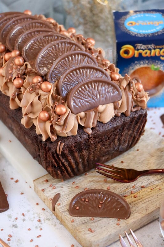 A delicious and sweet Terry’s chocolate orange loaf cake studded with Terry’s chocolate orange chunks, and a Terry’s chocolate orange buttercream frosting!