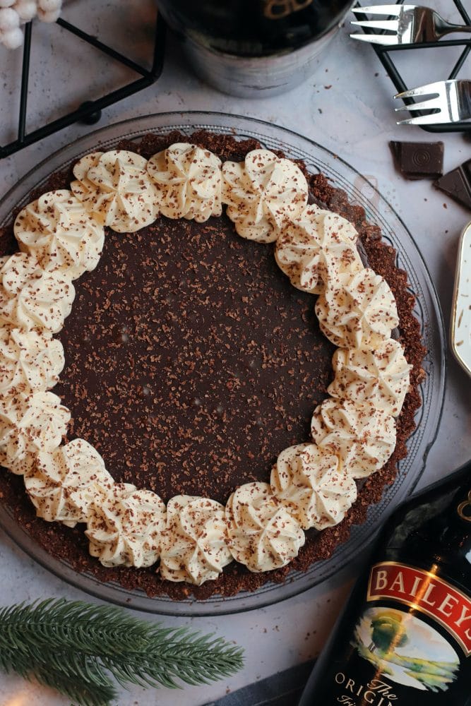 I used a 2d closed star piping tip for the decoration, and with the baileys whipped cream it pipes beautifully. I hope you all love this delicious indulgent Baileys chocolate tart as much as I did – enjoy!!