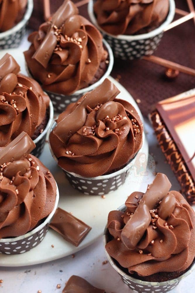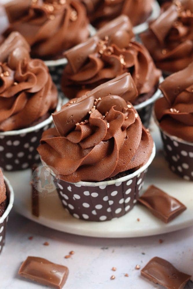 Yummy Galaxy chocolate cupcakes with a chocolate cupcake sponge, Galaxy chocolate buttercream frosting. GALAXY HEAVEN!
