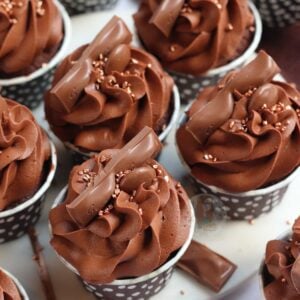 Anyway… the cupcakes. I decided to use my standard brown sugar chocolate cupcake sponge. It’s an easy basic sponge, plus cocoa powder. They’re still light and delicious, and I use them in so many recipes – including my Toblerone cupcakes!