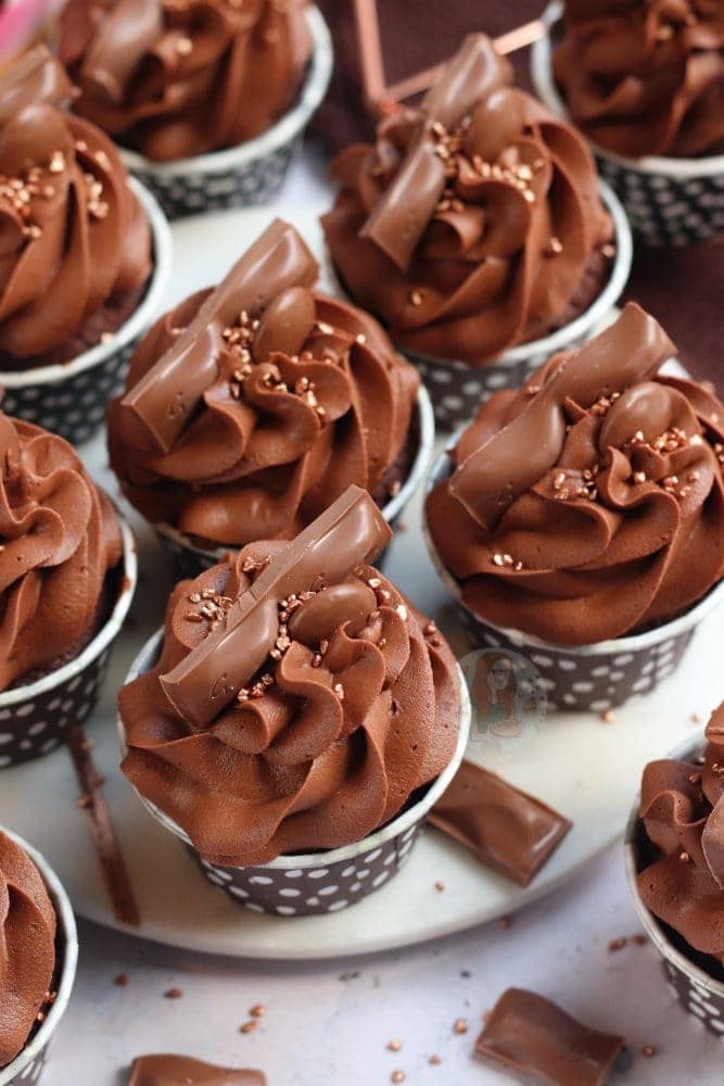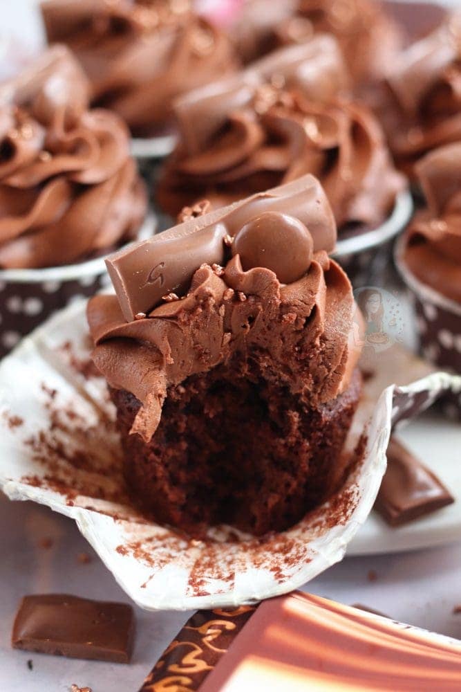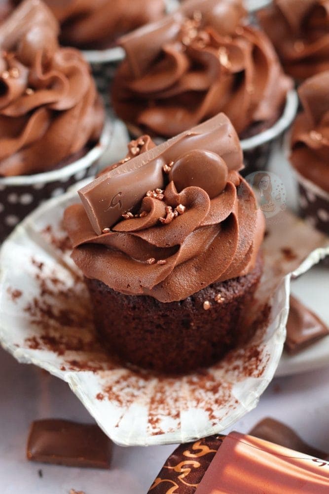 Like me, you can put some chopped galaxy throughout the cupcake – but its completely optional. You have enough galaxy in the buttercream and decoration that you definitely don’t need it – but I just love going a little overboard on a flavour theme! As you all well know…