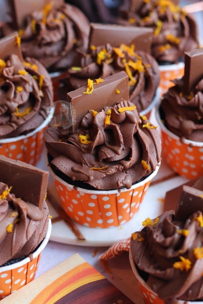 - I don't use the Galaxy chocolate orange in the frosting as it reacts different compared to normal chocolate and solidifies very quickly. I recommend just the drizzle if you fancy it, and the pieces on top!