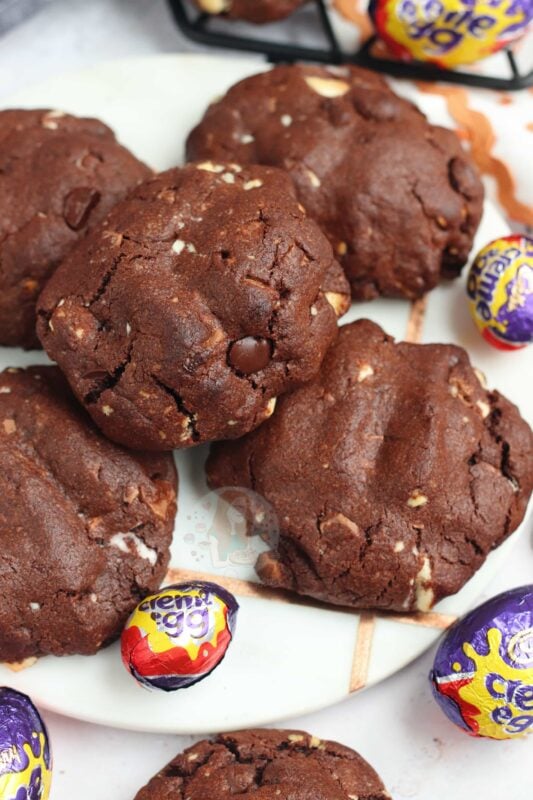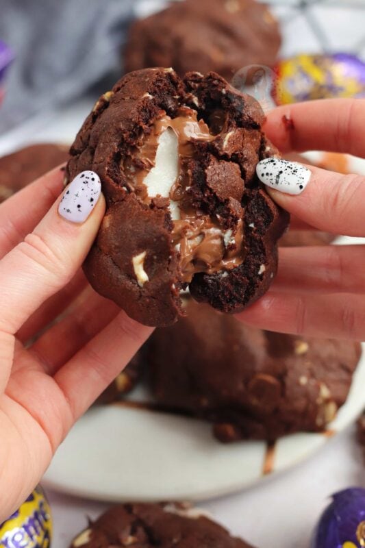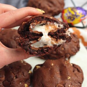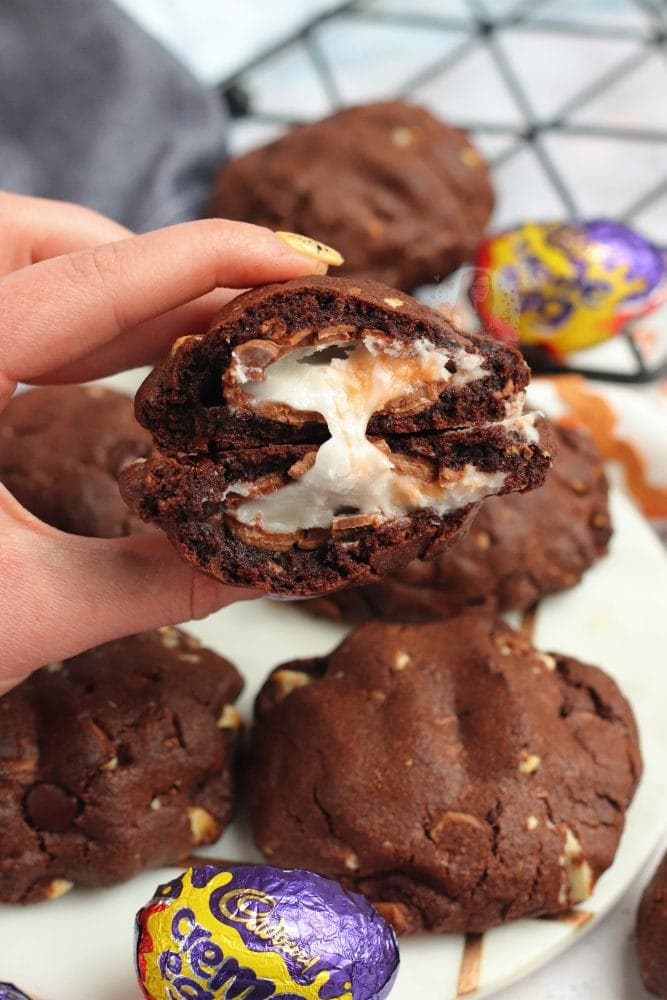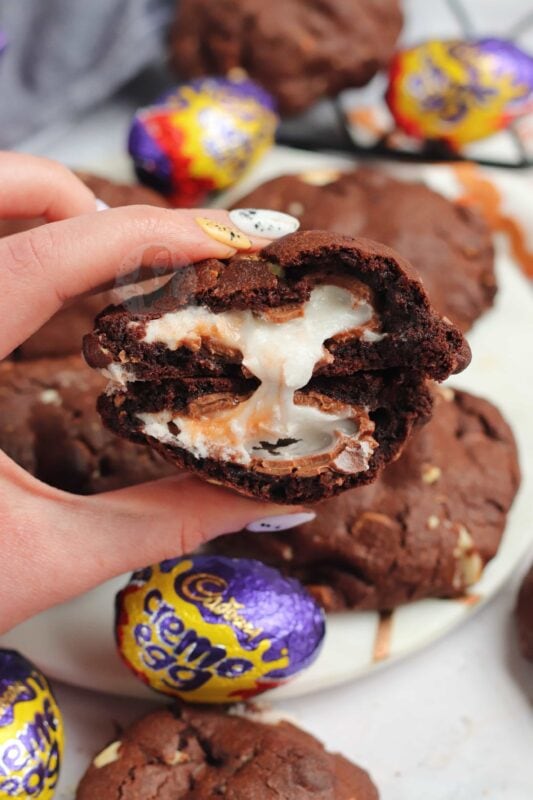Feel free to lower by 10 degrees though if you’re worried. They create a lovely harder exterior, but a gooey and molten centre to your cookie, and it’s honestly EPIC. Like beyond epic. I hope you love these as much as I, and certainly, my creme egg obsessed friends did! X