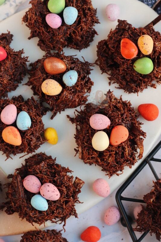There are so many ways of making these, but this is my personal favourite way. I like the mix of the different chocolates, using shredded wheat, and topping with a mix of different easter chocolates for a variety.
