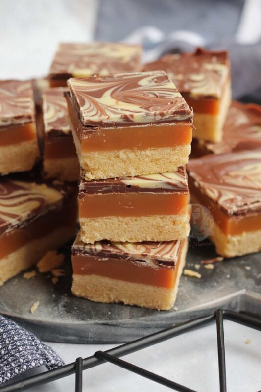 Truly outstanding! Thank you so much for the recipe! I made these yesterday and I am not normally a Baker but decided to try these as they are my favourite and I wanted something that my wife and son would love. Your YouTube video was very easy to follow and filled with detail that it was almost impossible to go wrong. I managed to bake a perfect shortbread, caramel and chocolate with perfect amounts. We absolutely love it and now have friend and neighbours asking for the recipe. Left peices in Tupperware for them to try as a lockdown treat. So thank you for sharing this recipe and spreading some happy times!