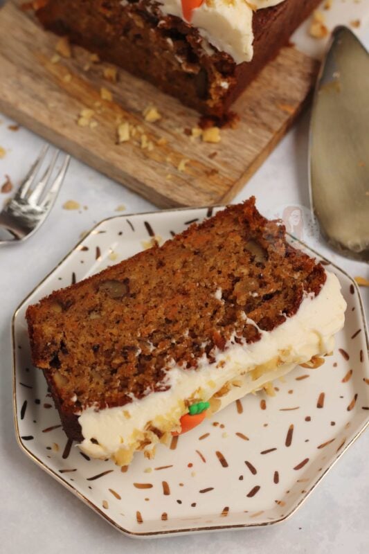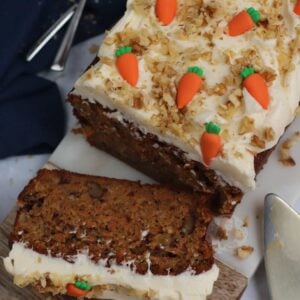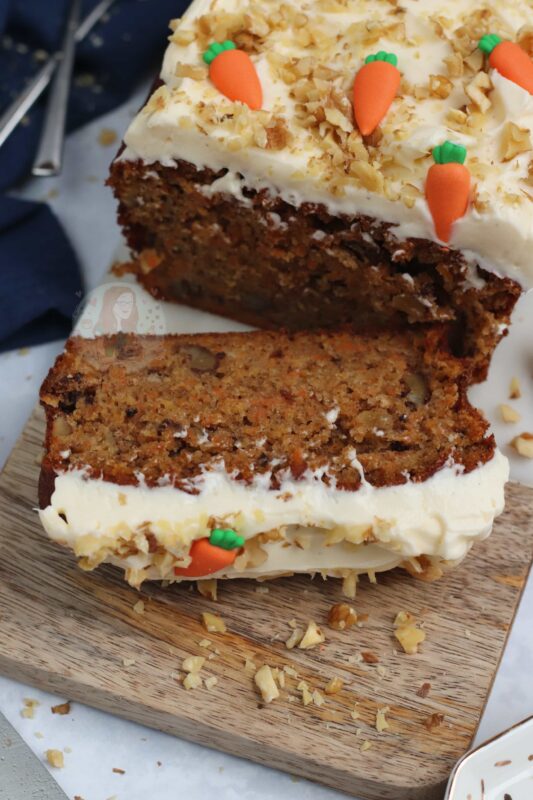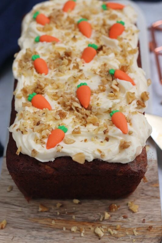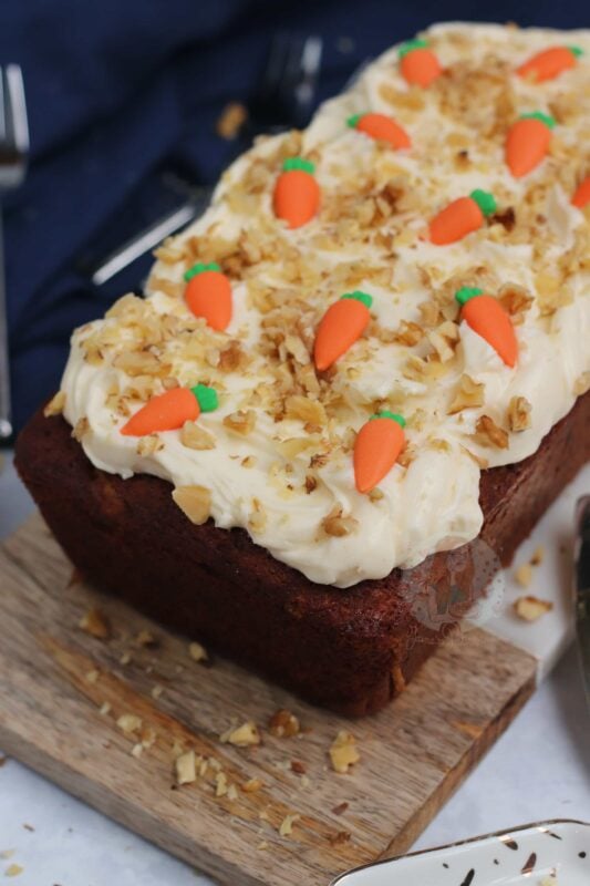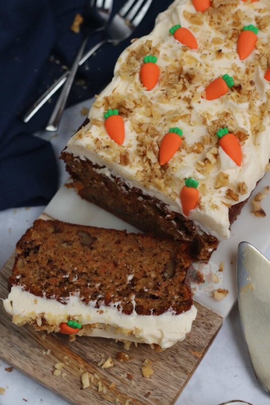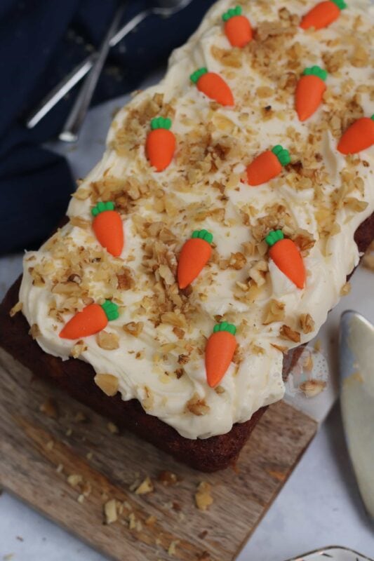 An easy carrot loaf cake with cream cheese frosting – easy, delicious, and the perfect easy bake!