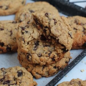 One thing that is different with these, is they can feel slightly softer. I use rolled oats, as I much prefer them in baking to porridge oats which I find can be too soft and can make a softer cookie – so rolled oats is best.
