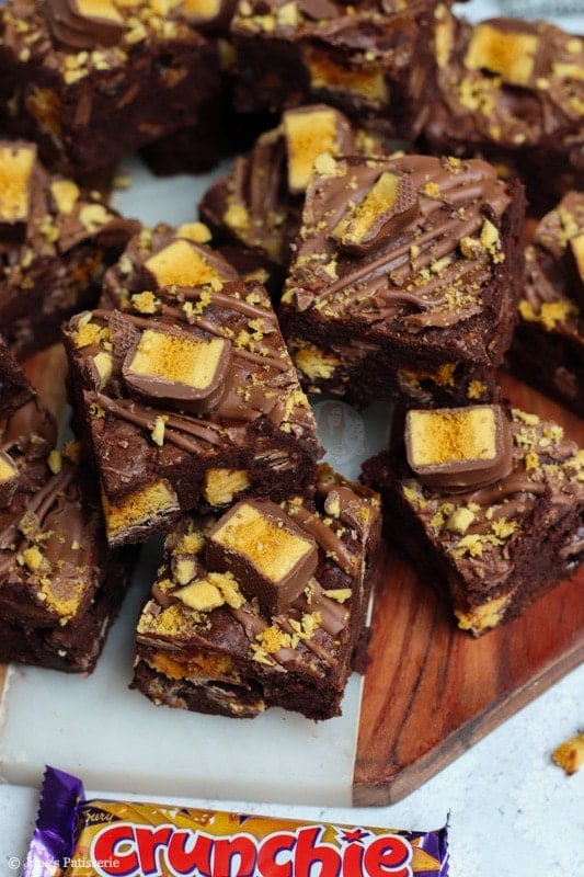 So when I do recipe request posts on my social media channels, I always get lots and lots of them. This is expected, and I love doing it because my list of recipes to do is really really long, and I need that! I always love new inspiration. But recently… Crunchie brownies were 100% the top of the list.