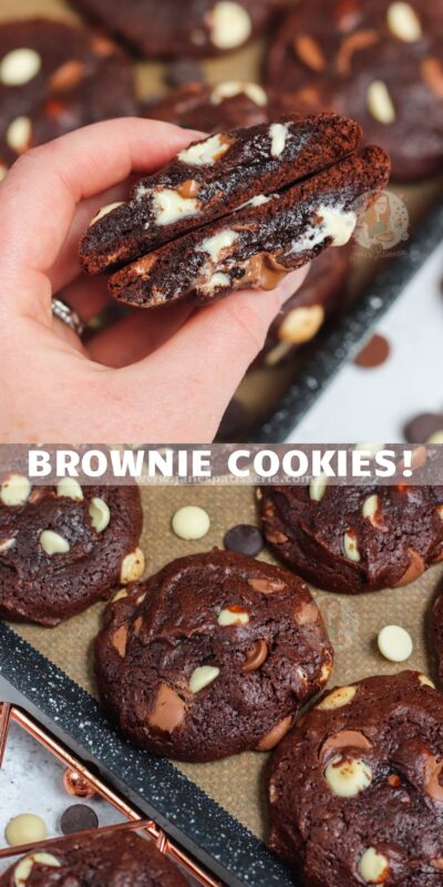 Easy and delicious brownie cookies – the gooey softness of a brownie, mixed with the delicious of a cookie!