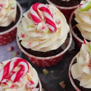 Delicious chocolate peppermint cupcakes with a peppermint buttercream frosting, and candy canes! The best candy cane cupcakes for the festive season!