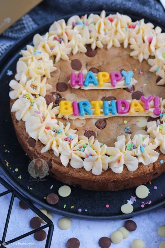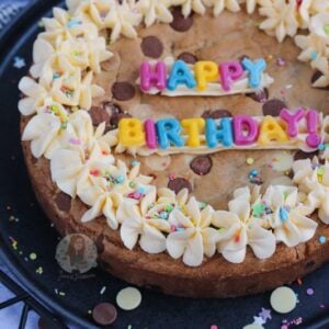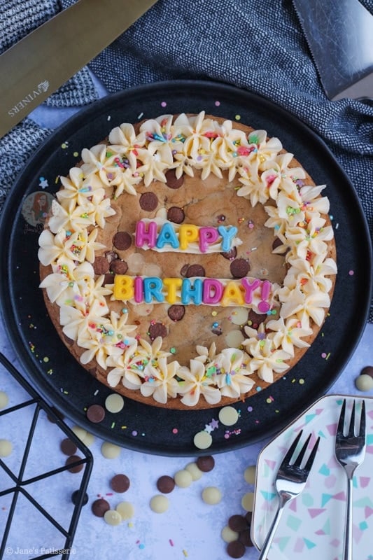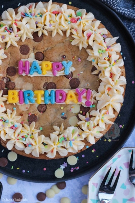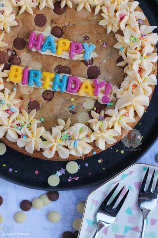 You can adapt this cookie for any occasion, not just birthdays! But I have a similar version for Christmas and Valentines, and even a Mini Egg cookie cake for Easter – YUM!
